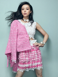 高圆圆红色套装写真 复古红唇释放新年喜庆
