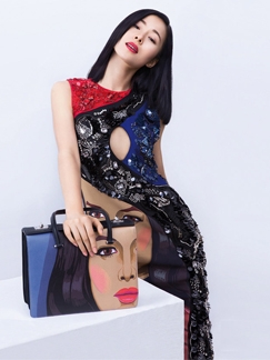 高圆圆红色套装写真 复古红唇释放新年喜庆