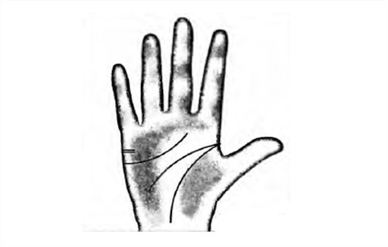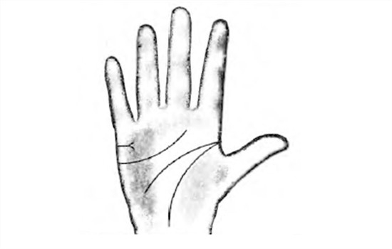 婚姻线末端分叉,又名分居线。主要表示异地婚姻,两人聚少离多而难言幸福。