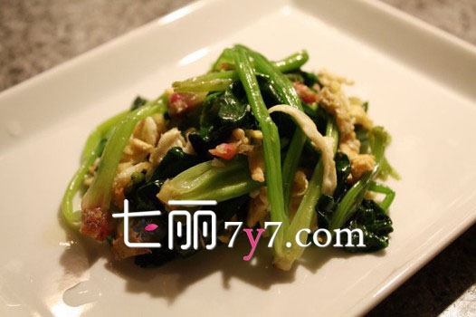 材料:菠菜300g、鸡蛋150g、葱50g、姜20g、蒜30g