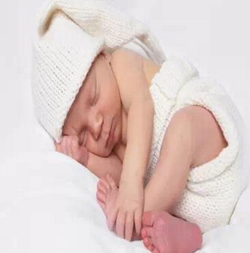 睡姿特点:侧卧,小手小腿蜷成一个团,类似胎儿在母亲身体中的姿势