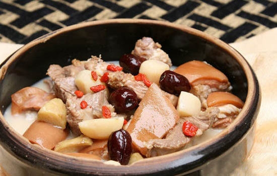 材料:枸杞子20克,黑豆30克,羊肉150克,姜,盐适量调味。