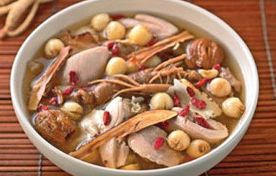 材料:20克龙眼,人参6克,15克枸杞,150克猪瘦肉。
