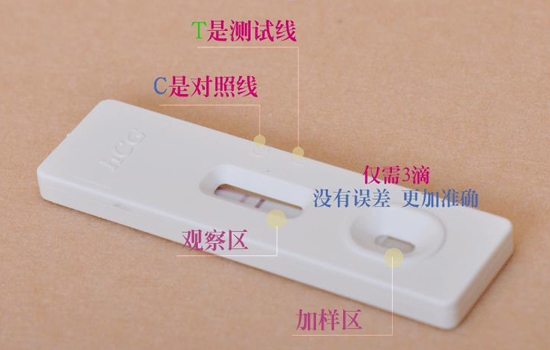 4、如果妊娠刚刚开始,或者有异位妊娠(宫外孕)的可能,体内HCG水平一般偏低检测的样品需静置3分钟以上(一般仅需1分钟),并必须仔细辨认是否有弱阳性,检测区色带仅隐隐出现。