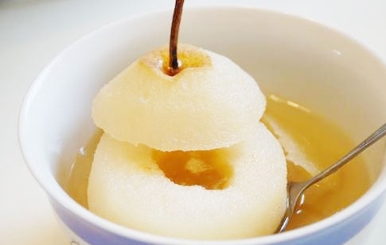 食材:1000g雪花梨、20g红枣、25g冰糖、15g姜片、150g蜂蜜、10g川贝、2g甘草。