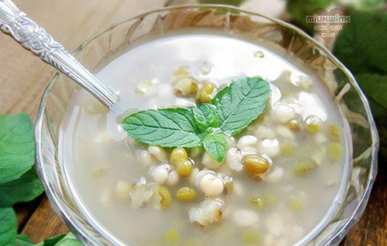 4、放入薏仁一起煮,直到绿豆和薏仁全部熟烂,最后,入糖调味,煮匀就可以了。