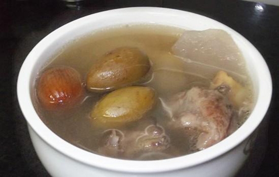 3.然后与洗净的橄榄同放入沙锅,加水足量,大火煮沸后,改用小火煨煮40分钟,加少许精盐,拌匀即成。