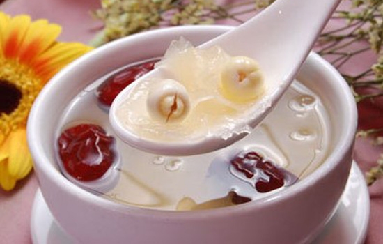 3.放入冰糖,溶化起锅后即可吃莲米、红枣,喝汤。