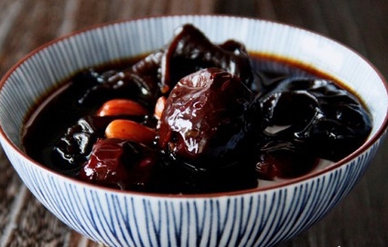 2.用小火煮至黑豆熟透,去渣取汁,然后用上述药汁煮洗净的莲米和红枣,煮至莲米烂熟时;