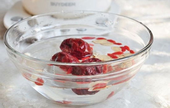 2.加入冰糖溶化后即可吃红枣,喝汤。