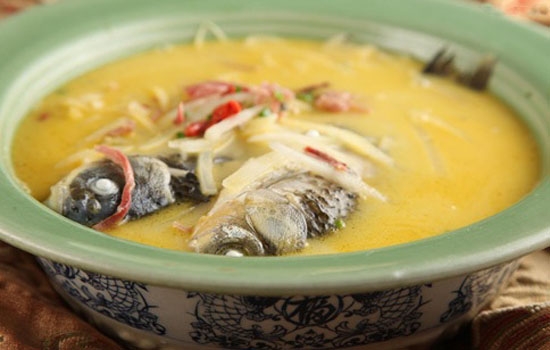 4.随后将鲫鱼放入碗中,浇入煮鱼原汤,撒上葱姜末,淋香油,再放回笼内,用大火蒸约5分钟即可。