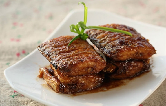 2.锅中倒入适量油,油约6成热后,将带鱼裹一层干淀粉后放入锅中,煎至两面金黄后捞出。