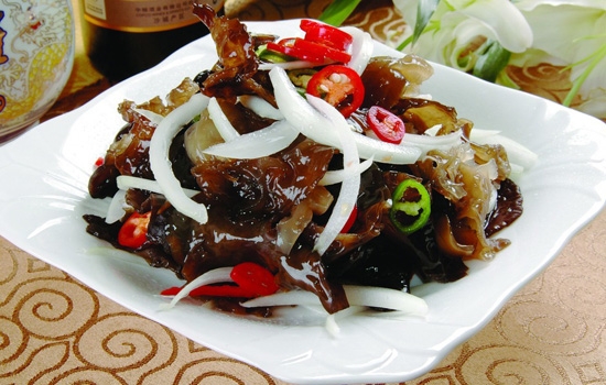 材料:泡发木耳1碗、洋葱1个、豆油1勺、精盐1勺、花椒粉少许。