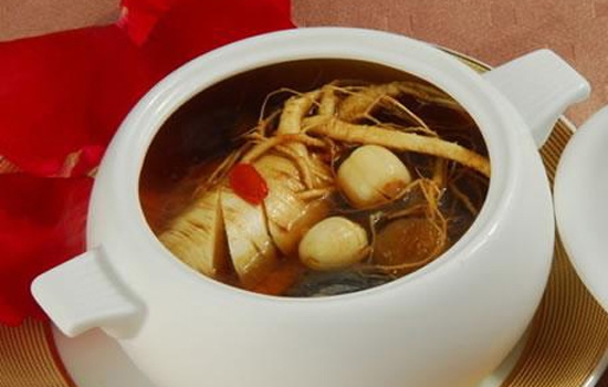 4.人参、莲子各10克,冰糖30克,隔水炖熟,吃莲子喝汤。
