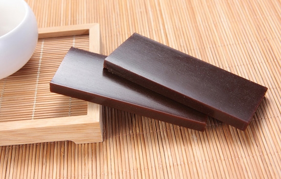 2.道地的阿胶表面平整,无油气孔,质硬而脆,断面光亮细腻,碎片对光照视呈棕色半透明。