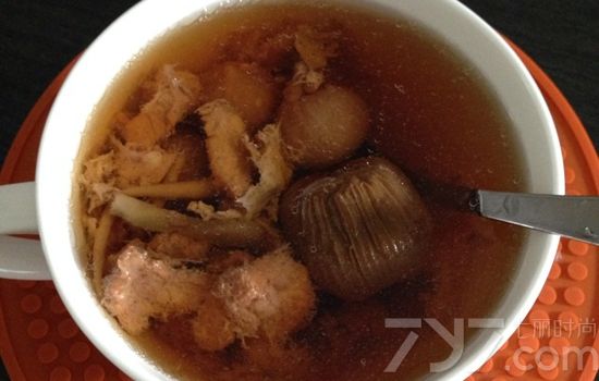 材料:瘦肉70g、蜜枣1颗、北杏仁8g、南杏仁8g、无花果25g、枸杞少许、姜4片、盐少许。