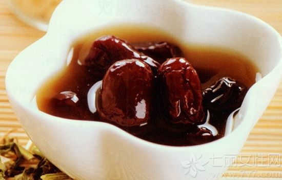 3.煮好之后用纱布过滤出汤汁,然后在药渣中继续加入500克的清水,用相同的方法煮好,隔出汤汁,然后将两次煮好的汤汁一同倒入锅子中,加入红枣一起煮开,倒入碗中,加入赤砂糖融化之后,再侵泡半个小时左右就完成了。
