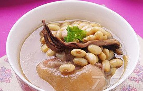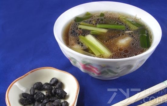 香菜30克,黄豆50克,加水1000毫升,煎至600毫升,食盐调味。