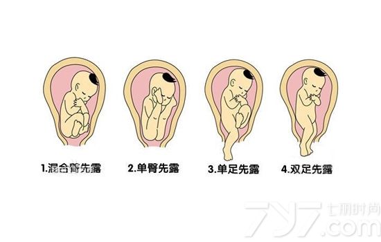 3.不完全臀位:以一足或者双足、一膝或者双膝、一足一膝为先露。