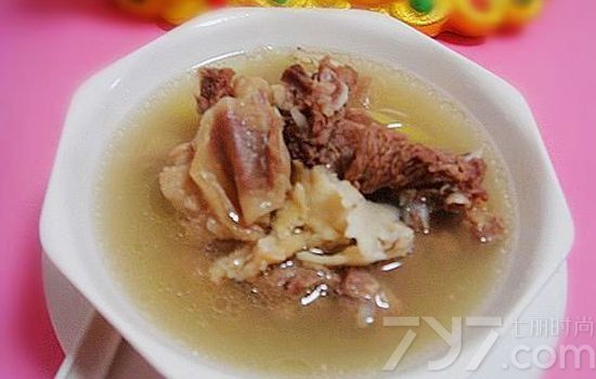 材料:羊肉500克,附片(布包)7.5克,生姜12.5克,葱12.5克,胡椒1.5克,食盐2.5克。