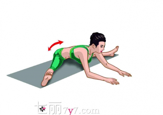 作用:尽最大限度贴近地面,感受腰身的伸展与腿内侧肌肉的伸缩。