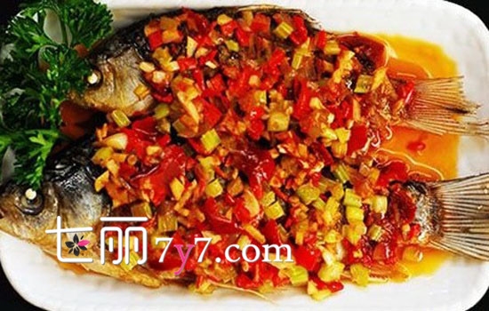 原料:鲫鱼1条,枸杞12克,豆油、葱、姜、胡椒面、盐、味精适量。