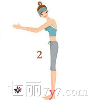 双手交叠握掌,伸展腰身用力向前倾,保持10秒。每天做5次。
