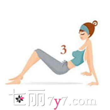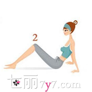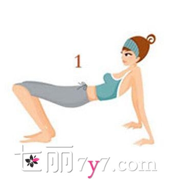 双膝弯曲,手臂向后伸直双手撑地。手指向前,消耗手臂赘肉。