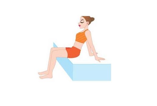 步骤一,坐在软垫上,双手向后撑住垫子,双腿并拢数秒钟,当脚感到疲惫时即可。