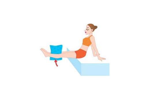 步骤二,双脚夹住枕头,缓缓抬起双脚,与臀部坐垫保持平行,改动作维持三十秒不动,然后收回双腿放下。