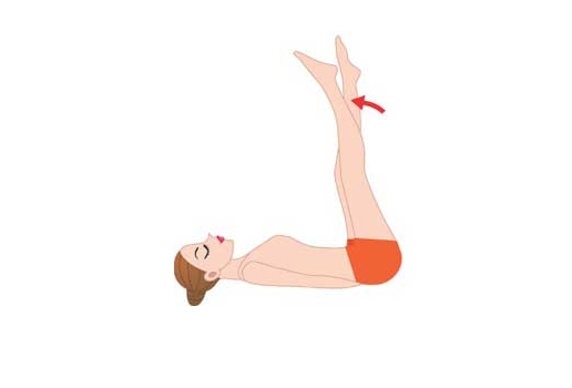 步骤二,抬起双腿,膝盖伸展,双腿交叉朝着天花板,尽量伸展屈膝,收缩大腿肌肉、