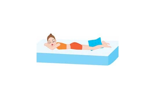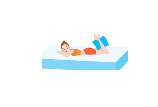 步骤一,整个人俯卧躺在床上,双手交叉手腕撑住下颚,双腿脚踝夹住枕头并且用力挤压。