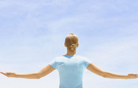 2.收缩上臂外侧肌肉,让双臂像鸟的翅膀一样展开,直到上臂与肩平行,注意肘、腕关节均要伸直。坚持2秒钟,然后双臂缓慢放下,恢复到第一步的状态。重复练习10—15次为一组,每天练习5组。