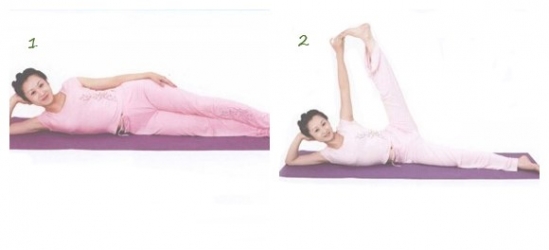 1.侧卧,身体保持一条直线,右手托住耳朵上侧;