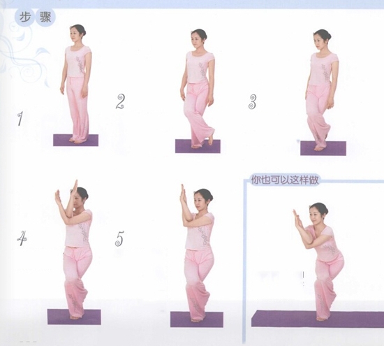 4.慢慢将脚跟立起,保持5~8次深呼吸;吸气时起直,调息休息,重复6~12次即可。