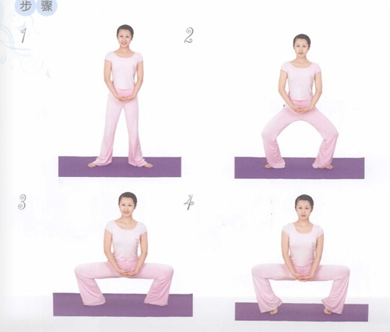 3.呼气时,再向下蹲,使大腿与地面平行,保持5~8次呼吸;