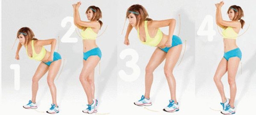 1、双臂自然向前伸,上半身尽可能的放低。