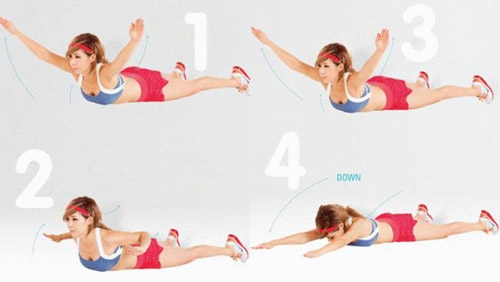 4、吐气时,四肢和上半身慢慢的放下但不着地。
