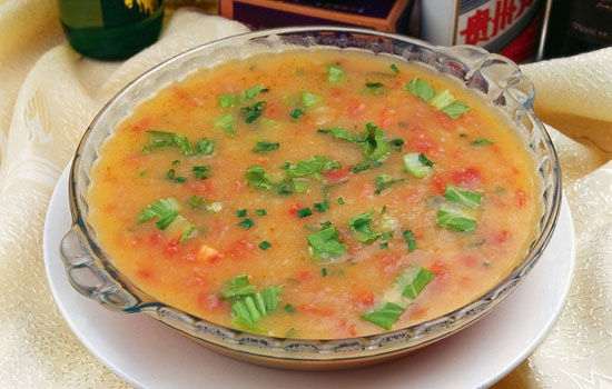 做法:将土豆蒸熟,按压成泥状,将番茄去皮后切小粒(或用搅拌机打成泥),与土豆泥拌匀即可,用之代替早餐,可以一边食用番茄土豆泥,一边少量饮用温水。