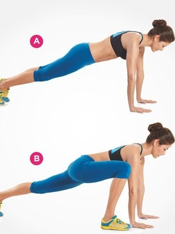 (A)预备俯卧撑姿势,从肩膀道脚踝保持斜直线。