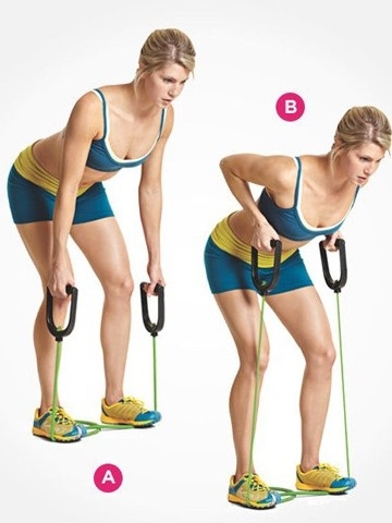 (B)往上提拉阻力带直到上腹部,保持三秒钟然后回到起始位置。