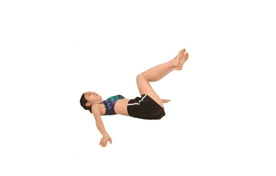 平躺仰卧,双手打开放在身体两侧,掌心向下。保持上半身不动,曲膝并垂直向上抬起。接著两腿膝盖并拢并向左侧摆动并贴地,右肩部位必须紧贴地面不能抬起。恢复仰卧姿势后再遵循相同的要领向右侧摆动双膝。左右各一次为一组,重复8组。