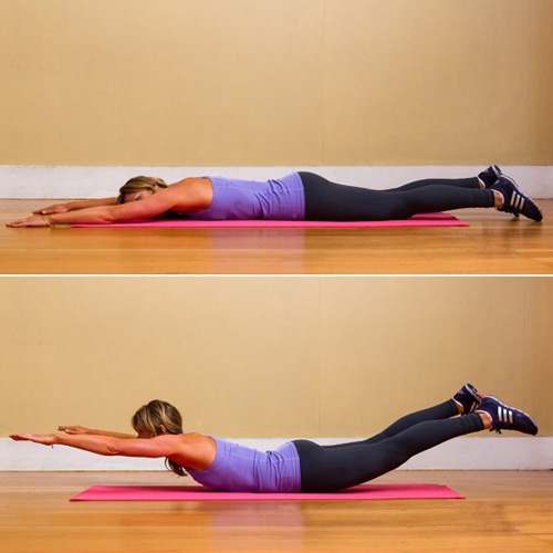 4、最后,上下半身同时向上抬起,从侧面看身体呈现为U形,保持5秒钟后复位,重复10次为一组。完成上述动作后,做20秒钟“婴儿式”——即膝盖靠地,大脚趾相碰,坐在脚跟上,分开膝盖与臀部同宽。借此来平衡刚刚完成的反向动作,松弛紧张的肌肉,巩固锻炼效果。