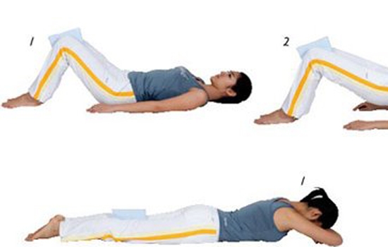 仰面朝上平躺,双腿曲膝成90度,同时张开与肩同宽,双手平铺地面,以腰部的力量将臀部撑起,均匀10个;右脚不变,左脚伸直,与地面成45度以上的角度,提臀10个;换右脚再来10个!这组动作一共是30个。
