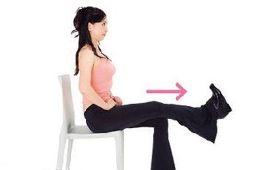 坐在椅子上,两手扶着椅子两边,固定身体,抬起一只脚并伸直膝盖静止30秒钟,然后换另一只脚重复动作。