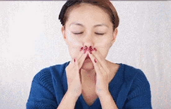 第一步:从面颊两侧向人中方向按摩4~6次。