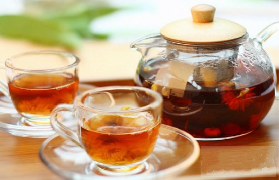 制法:将新鲜的山楂拍碎,再把菊花和金银花加入山楂,混在一起,用500ml的开水冲服.