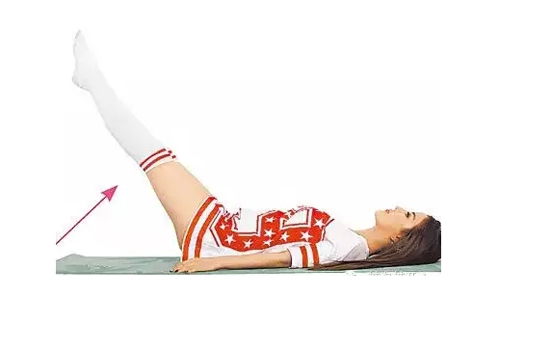 换左脚抬高与地面成45度,右脚与地面成15度,重复动作1至2共20次,下背需紧贴地面才能正确锻炼腹部。