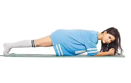 手肘弯曲呈90度,前臂贴地,脚尖点地撑起身体,后脑勺至脚跟尽量呈一直线,检查臀部不可刻意翘起、腹部要收紧上提,才可正确锻炼到腹部,停留60秒,可锻炼全身肌肉线条。