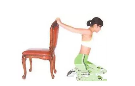 站在椅子背后,跪坐在离椅子约1步的距离。双臂向后抓着椅背,背部伸直,臀部坐在脚跟上。双臂伸直,保持这个姿势4个呼吸,重复练习5次。